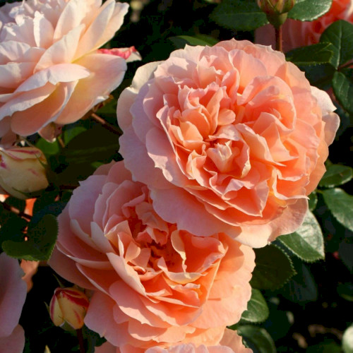 Rosa Schone vom See- махровая флорибунда, с интенсивной, необычной окраской в абрикосово-оранжевых оттенках. Куст прямостоячий, густооблиственный, высотой 70 см., шириной 50 см. Размер цветка 7-9 см., цветы появляются в больших соцветиях, цветение практически беспрерывное. Листва очень высокоустойчива к черной пятнистости и мучнистой росе.
